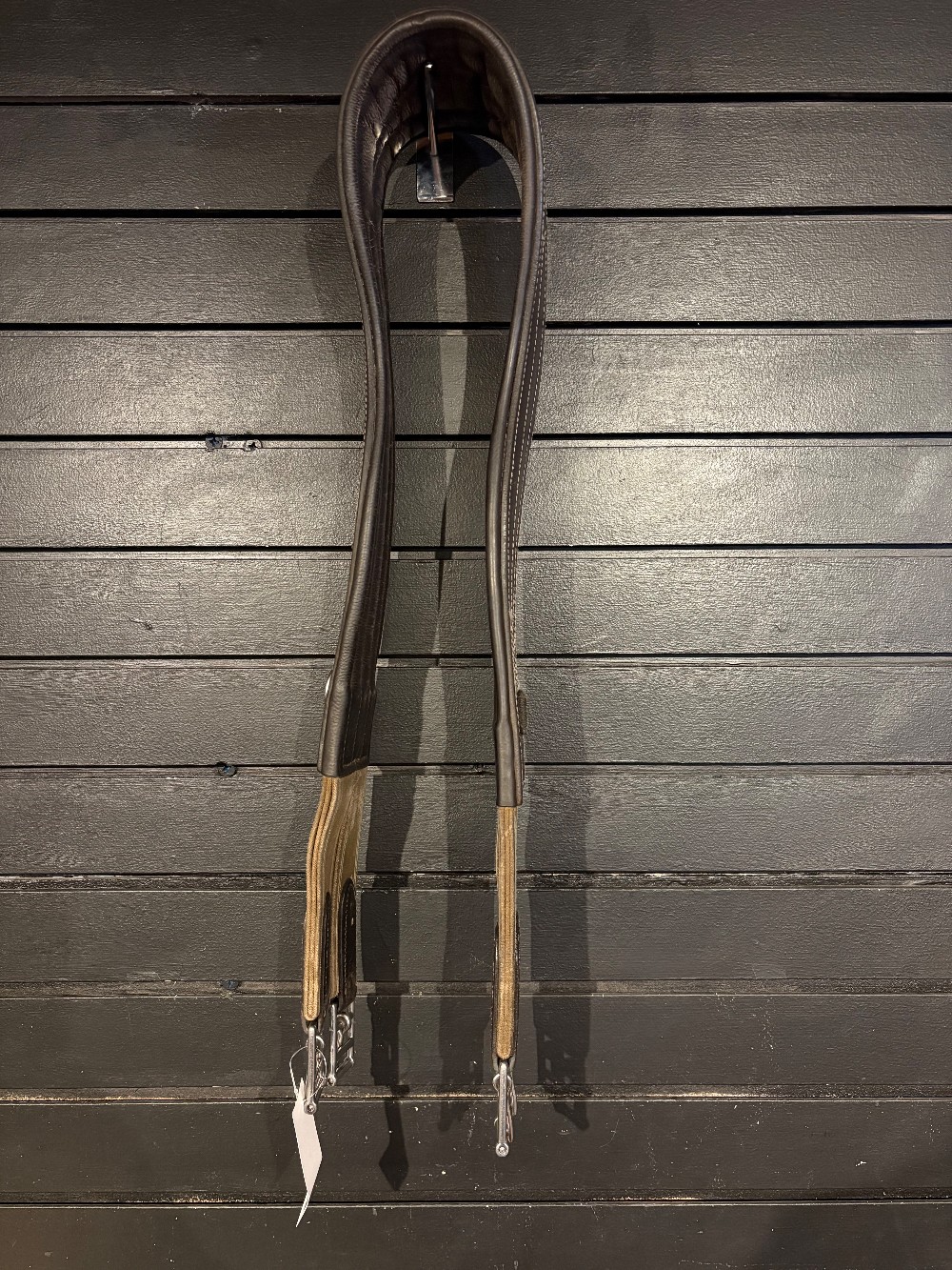 Havana leather shaped all purpose girth, stamped 52", in very good condition.