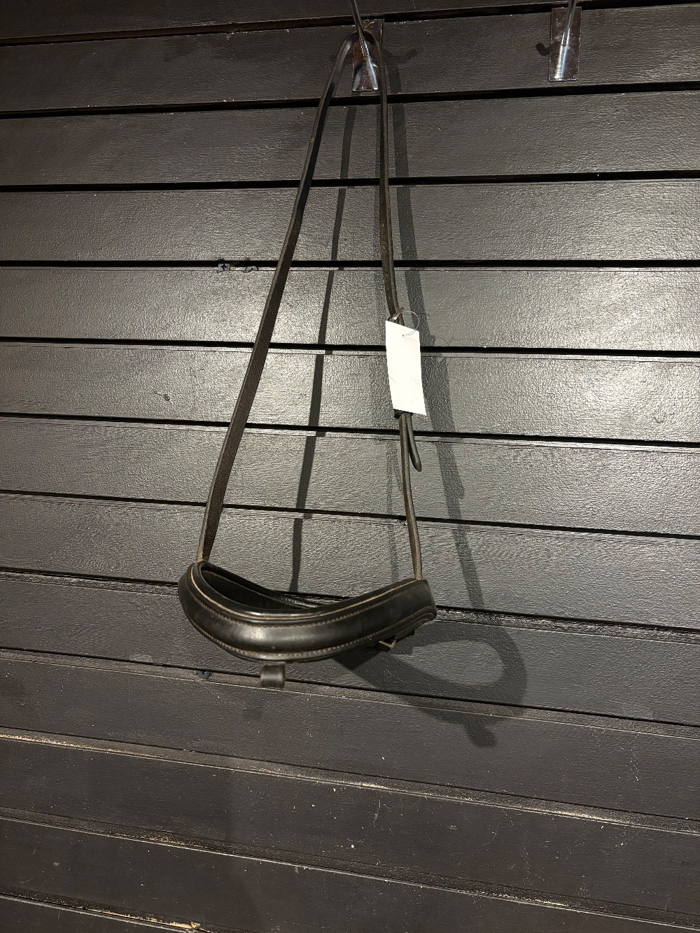 Black padded leather noseband, not stamped with size but most likely warmblood.