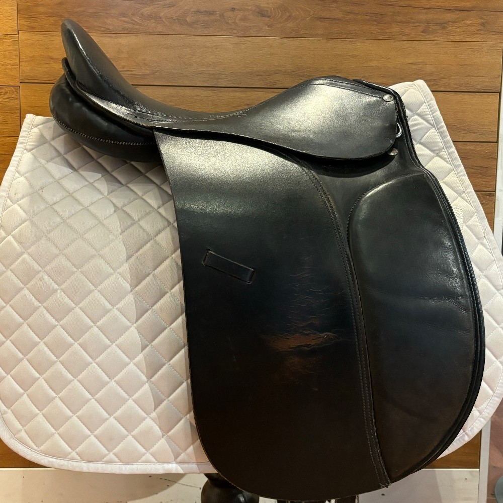 18" with a Medium tree. Flocking appears to be wool or a synthetic version. Leather could use some oil - otherwise in good working order.